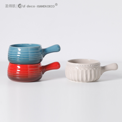 Ramequin rond en céramique de bol de dessert de tasse de gâteau de cuisson de plat de cuisson d'hôtel à la maison avec la poignée