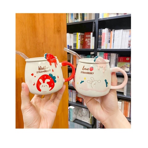 Dễ Thương Cá Tính Phim Hoạt Hình Dâu Bunny Straw Gốm Trà Sữa Cốc Giáng Sinh
