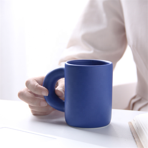 OEM/ODM 10Oz Tùy Chỉnh Thiết Kế Gốm Klein Xanh Kem Fat Big Tai Hand Hold Mug Cho Drinkware