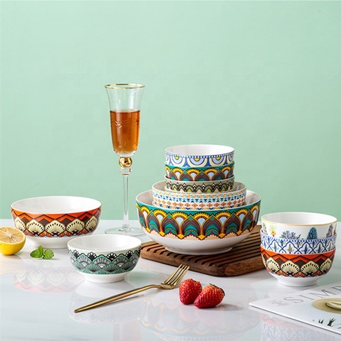 Nhà Máy Cung Cấp Hấp Dẫn Giá Sứ 10Oz Bowl Set Boho Gift Set Tùy Chỉnh Nhãn Gốm Tròn Bowls
