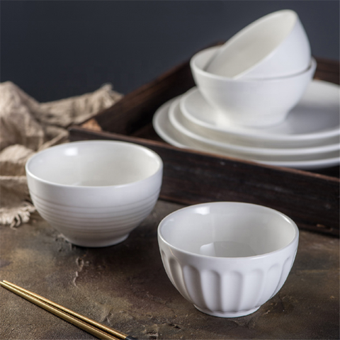 Sọc 12Oz Ounce Vòng Gốm Trắng Bát Cho Ngũ Cốc Súp Gạo Mì Ống Salad Bột Yến Mạch