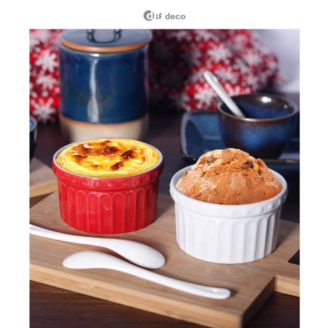 Cổ điển Vòng Màu Gốm Cupcake Cup Nổi Ramekin Kem Bát
